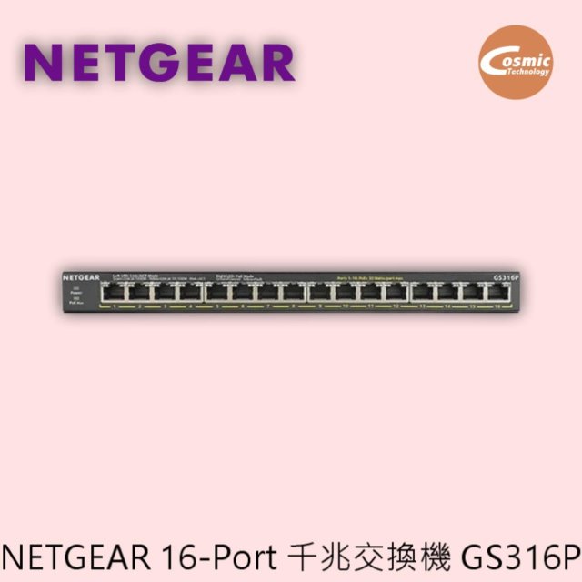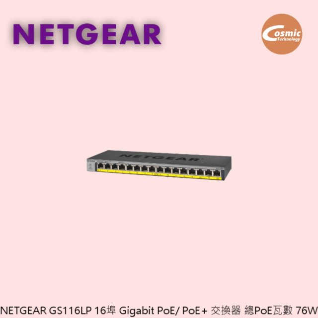 NETGEAR GS116LP 16埠 Gigabit PoE/ PoE+ 交換器 總PoE瓦數 76W