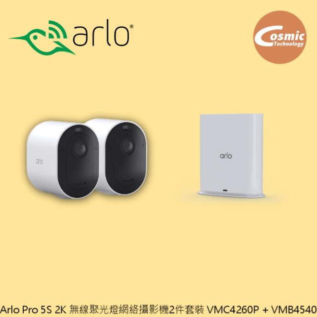 Arlo Pro 5S 2K Wireless Spotlight Camera - 2 Camera Kit 無線聚光燈網絡攝影機2件套裝 | VMC4260P + VMB4540