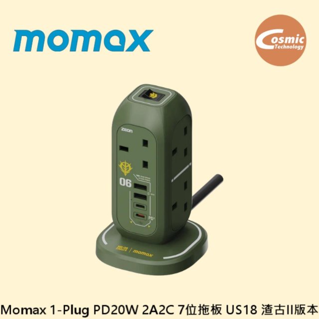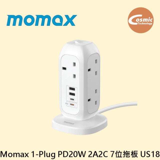 Momax 1-Plug PD20W 2A2C 7位拖板 US18 渣古II版本