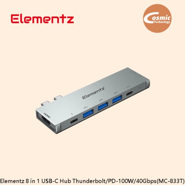 Elementz 8 in 1 USB-C Hub Thunderbolt/PD-100W/40Gbps (MC-833T)