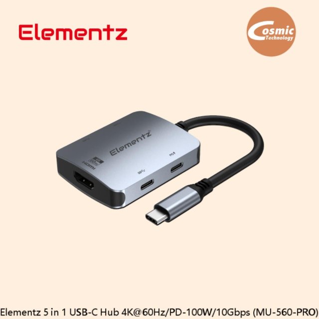 Elementz 5 in 1 USB-C Hub 4K@60Hz/PD-100W/10Gbps (MU-560-PRO)