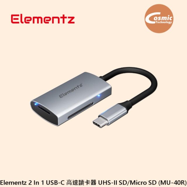 Elementz 2 In 1 USB-C 高速讀卡器 UHS-II SD/Micro SD (MU-40R)