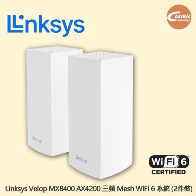 Linksys Velop MX8400 | AX4200 三頻 Mesh WiFi 6 系統 (2件裝)