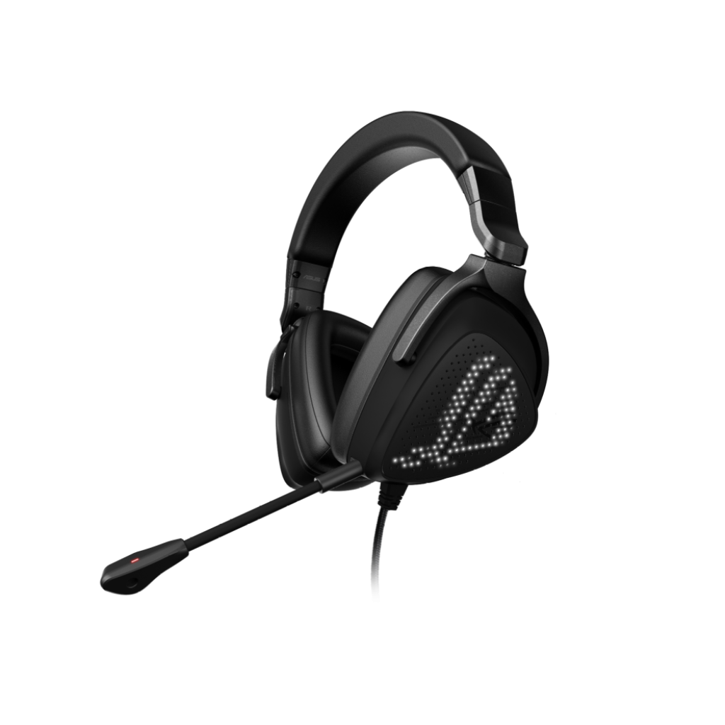 搭載 ROG 動態編程燈效(AniMe Matrix),迷你 LED 可供玩家於耳機外殼自訂個人化圖案或動畫