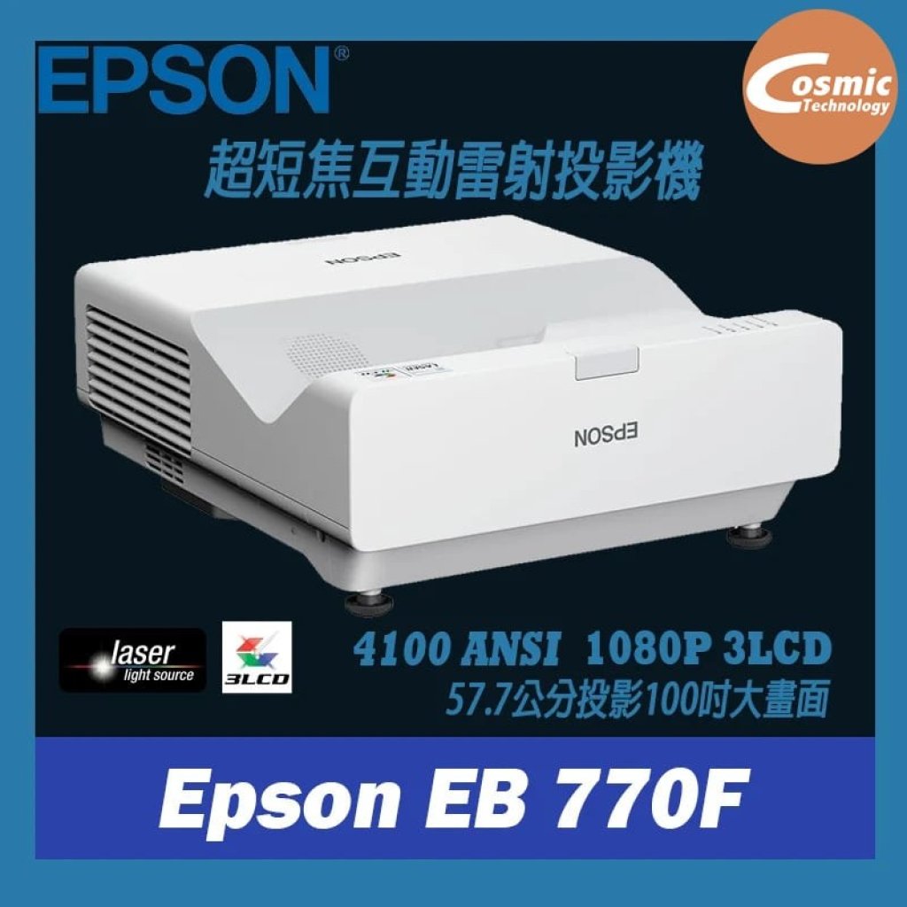 憑藉其智能超短焦設計,動態 EB-770F 可提供高達 150 英寸的令人驚嘆的高清圖像