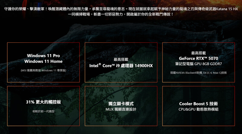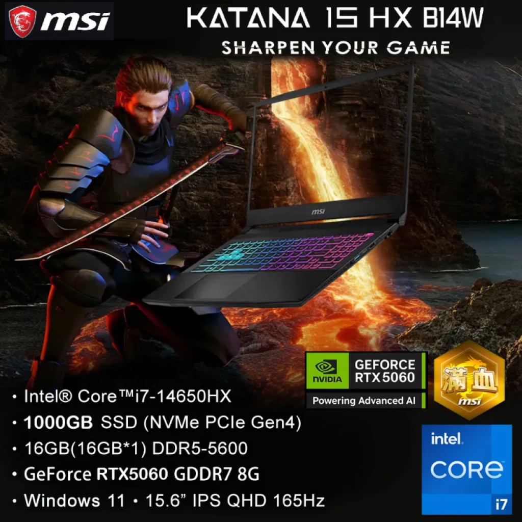 MSI - [RTX5060] Katana 15 HX B14WFK ( i7-14650HX/ RTX5060/ 15.6" QHD 165Hz) 手提電腦