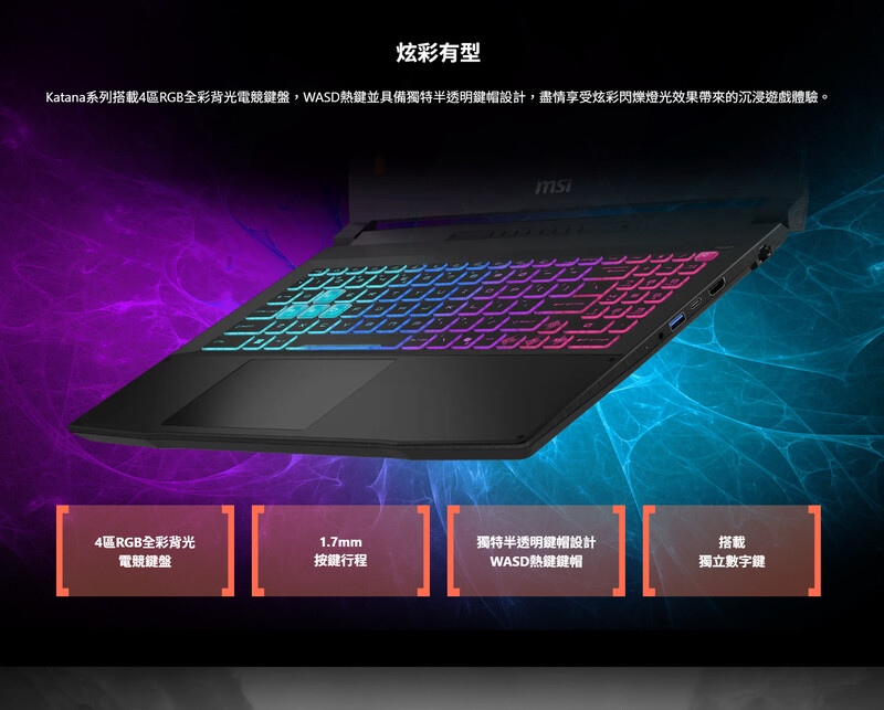 ▸ 4區域 RGB 電競鍵盤配有數字鍵