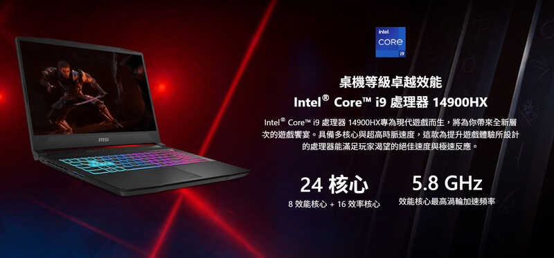 ▸ 搭載第14代Intel Core i7-14650HX 16核心 (upto 5.2GHz w/ 30MB Cache )