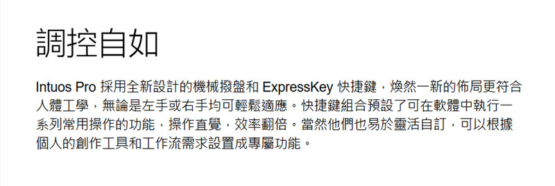ExpressKeys™ : 10 顆按鈕,可自訂或依應用程式特定功能
