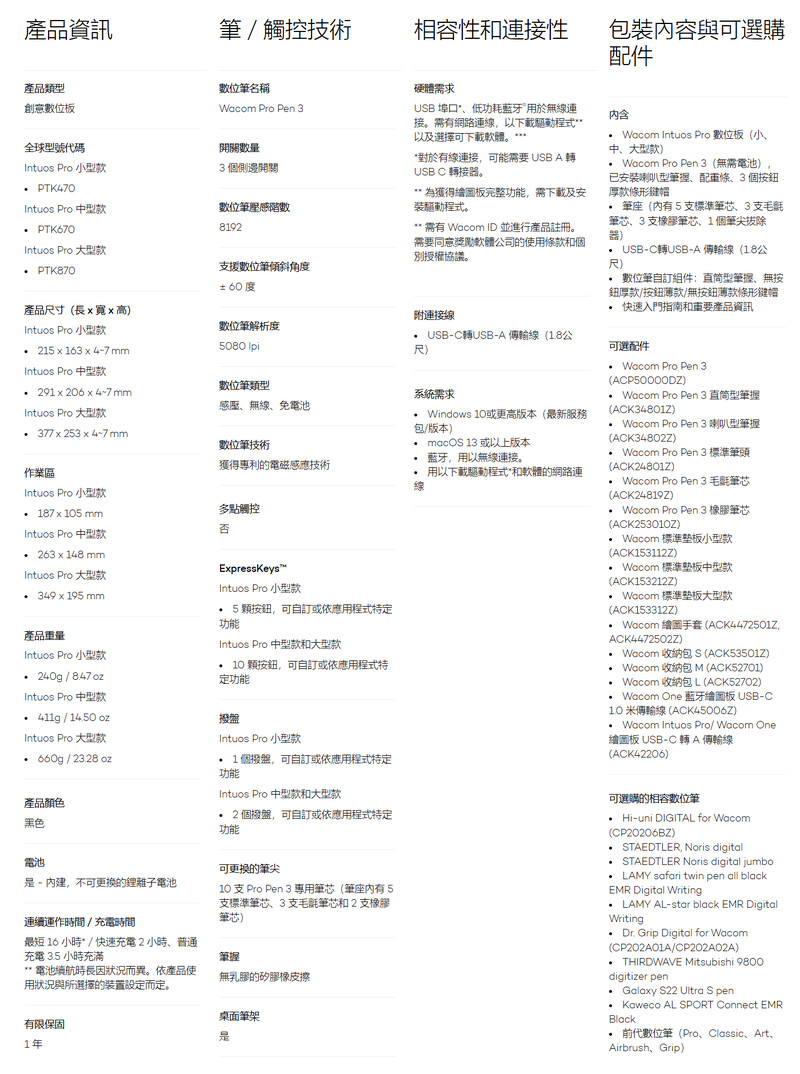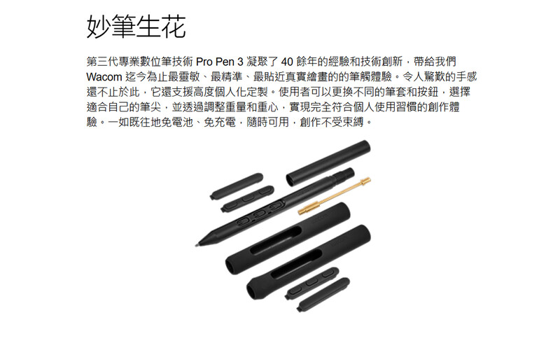 l   Wacom Pro Pen 3(無需電池),已安裝喇叭型筆握、配重條、個按鈕厚款條形鍵帽